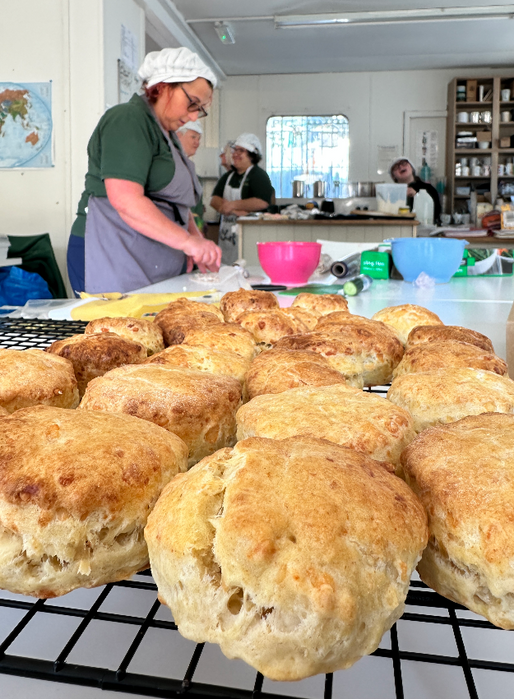 Our co-workers undertake many different jobs as part of their kitchen role, in addition to food preparation they also choose and write the weekly menu, tend our kitchen garden, order and unpack the groceries, do the laundry, plus serve the delicious meals they have made and the obligatory tidying up after.